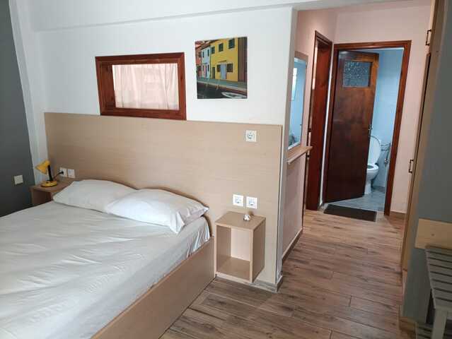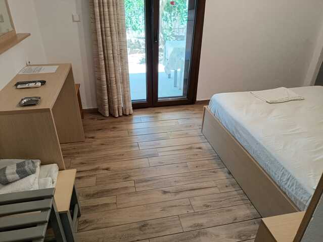 The Garden Master Studio double-bed has LCD TV (Greek channels+BBC+TV5+RIK+DW), wifi-internet connection (free of charge), private bathroom, Air condition, 24hrs hot water, kitchen with the appropriate equipment (the room’s kitchen is a typically holidays kitchen, with two hot plates, small oven, some plates, glasses, forks, spoons, knifes, and some cooking pans, etc.). The room is located on the ground floor at the garden. There is no sea view but you have direct access to the house’ garden.
